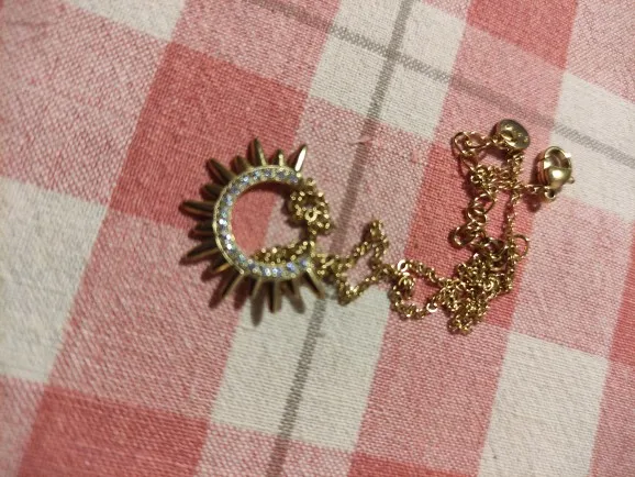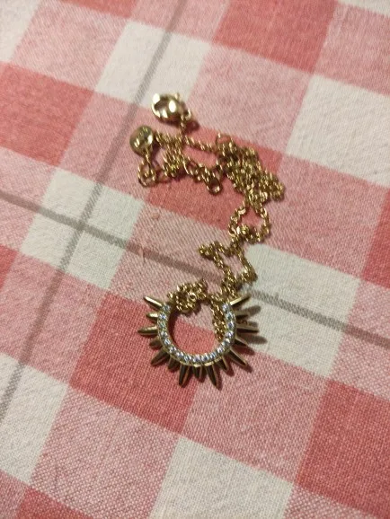 A sunburst crescent necklace with polished spike detailing and clear cubic zirconia accents. Light yet distinctive, it brings subtle sparkle and sculptural shape to everyday styling.
