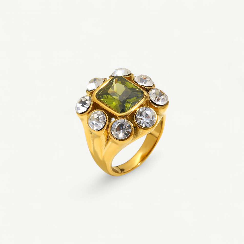 Olive Green Halo Dome Ring