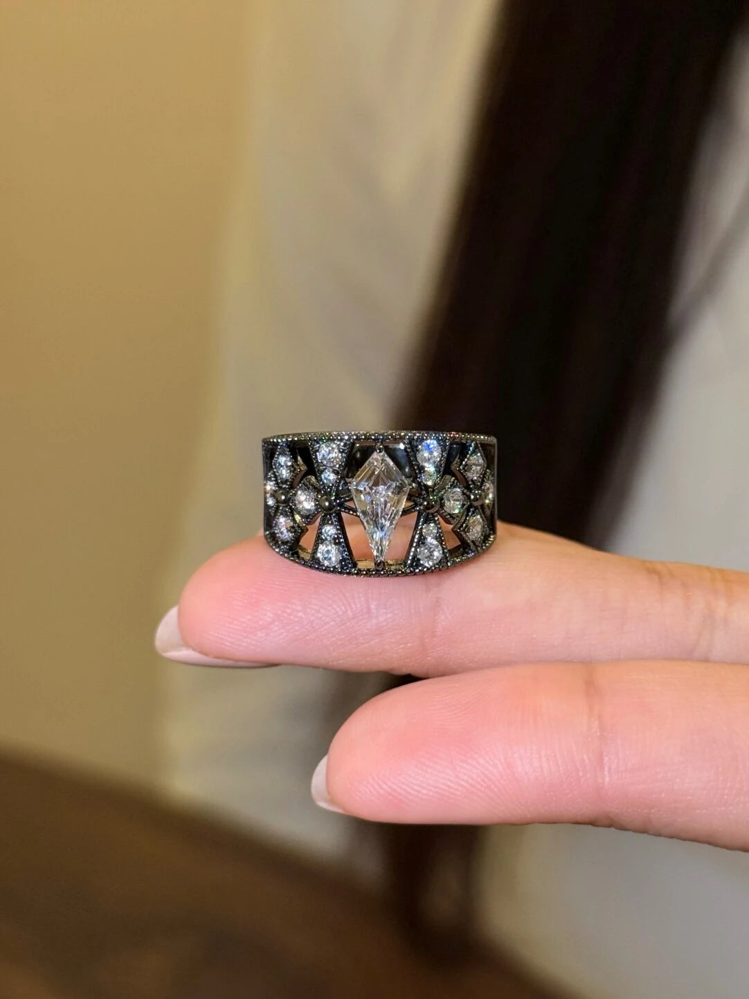 Black Gold Hollow Sword Diamond Ring